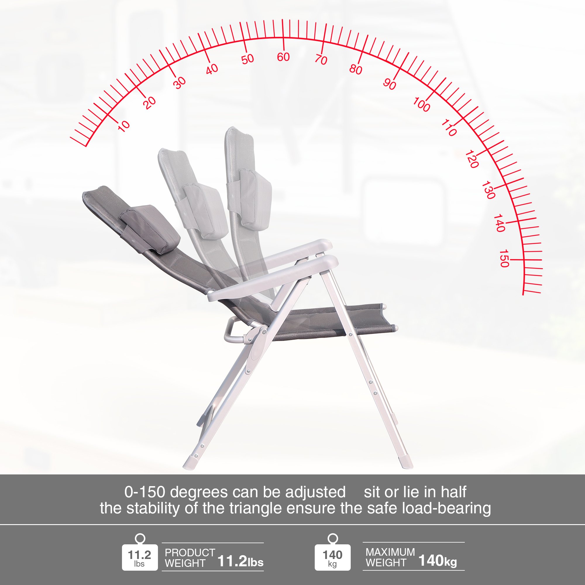 Home > Aluminum Alloy Lounge Chair Adjustable Recliner w/Pillow Outdoor Camp Chair for Poolside Backyard Beach, Support 300lbs, Grey