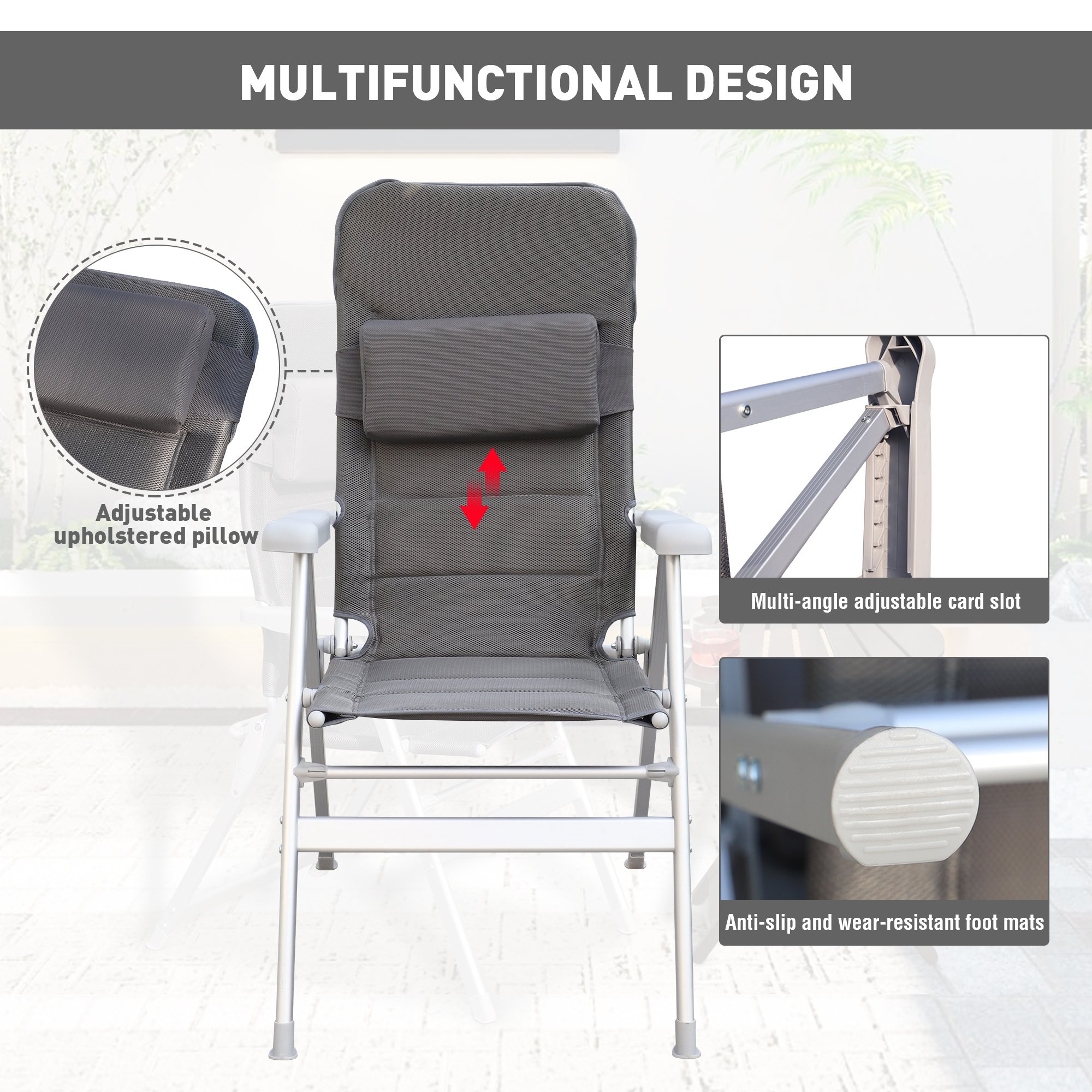 Aluminum Alloy Lounge Chair Adjustable Recliner w/Pillow Outdoor Camp Chair for Poolside Backyard Beach, Support 300lbs, Grey