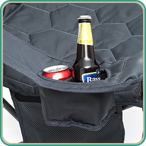 Super Handy: COOLER BAG & CUP HOLDER Keep your beverages cool in this built-in cooler bag(3 cans of cokes capacity). A convenient cup holder is built in to the left arm. The fabric is made from a durable outdoor-quality 600D oxford polyester.Built to Last: The sturdy steel frame construction affords up to 300 LBS (136KG) weight capacity and the chair weights 8.8 LBS (4KG). The double-seam 600x300D Oxford Cloth with 140g Foam Padding has great strength, durability, and breathability. You don't have to worry for the heavy-duty use, either to buy a new one in the near future.